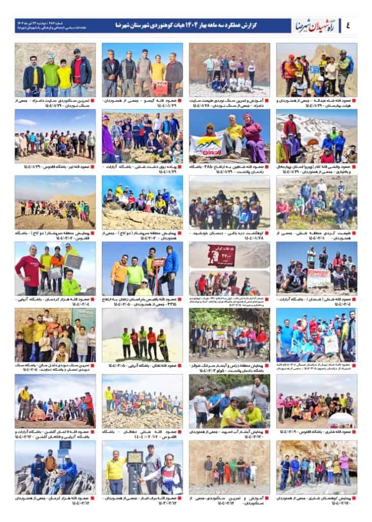 انعکاس گزارش عملکرد سه ماهه بهار 1404 هیأت کوهنوردی شهرستان شهرضا